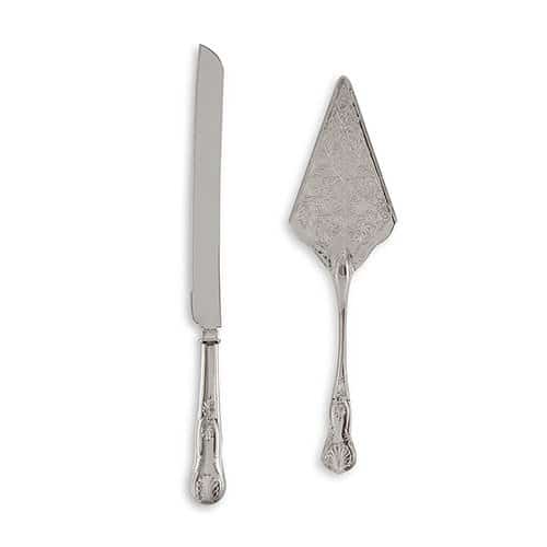 Deze Romantische Taartschep en mes Classic Silver is voor bruidsparen die van romantiek houden. Een prachtige set voor de bruidstaart ceremonie met klassieke handgrepen en een sierlijk reliëf op de taartschep.